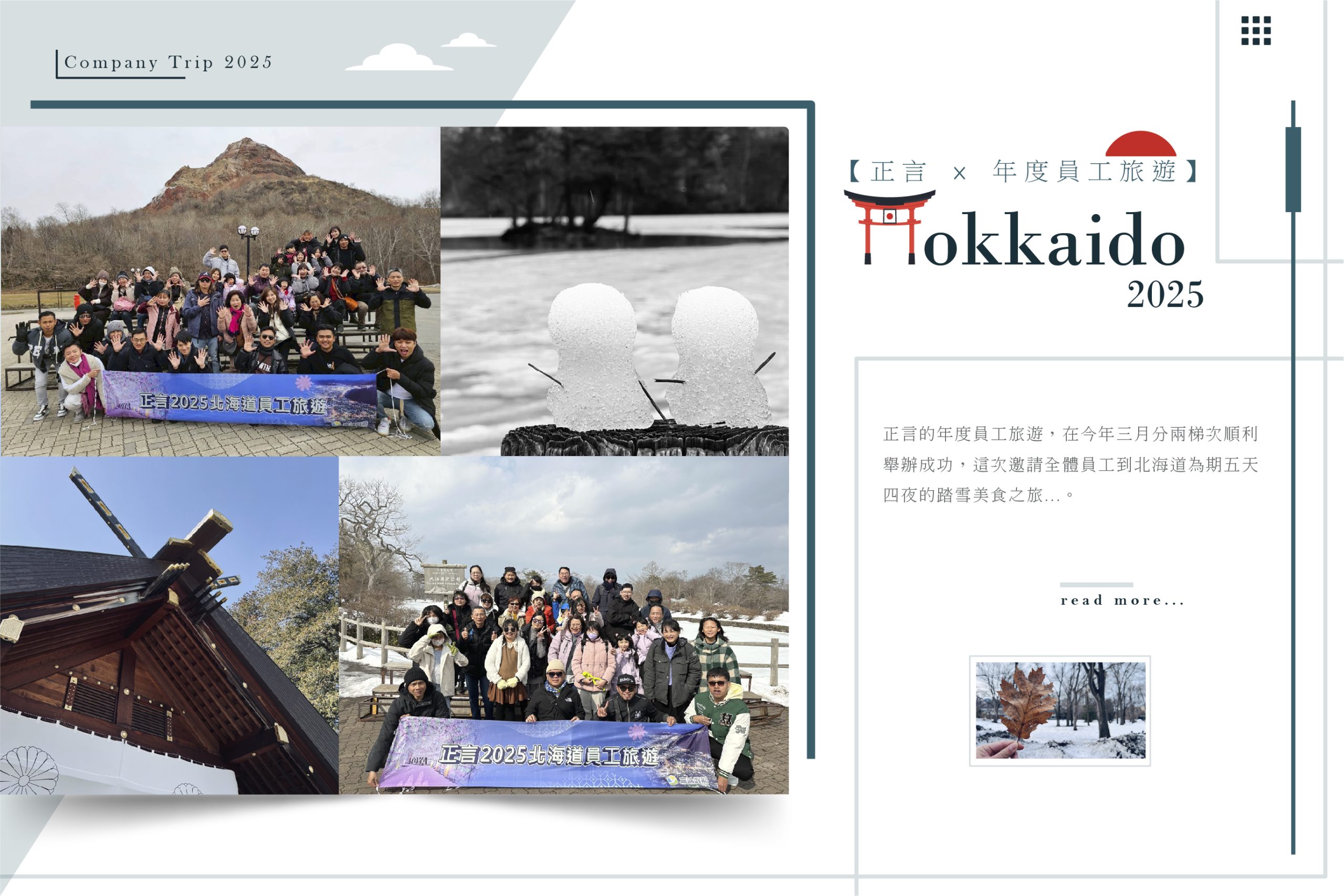 Earlier this year, we organized our annual company trip to the beautiful winter wonderland of Hokkaido. To ensure smooth business operations and continuous client support, we arranged two separate departure groups. This allowed every colleague to join the trip while maintaining our daily service standards.